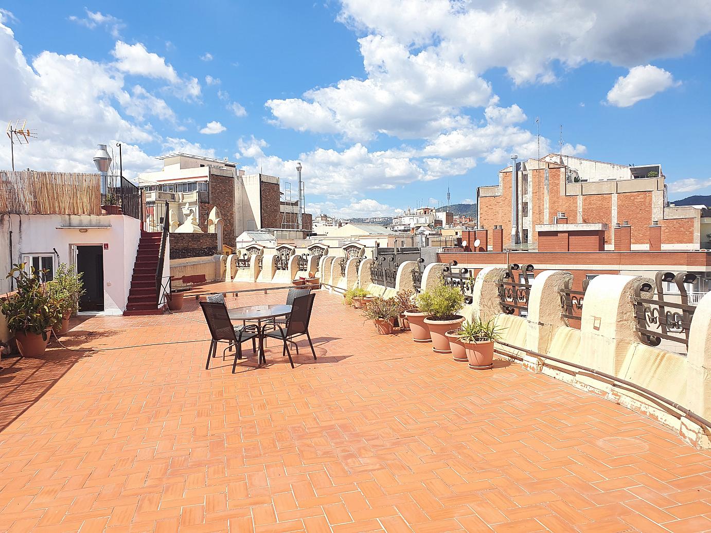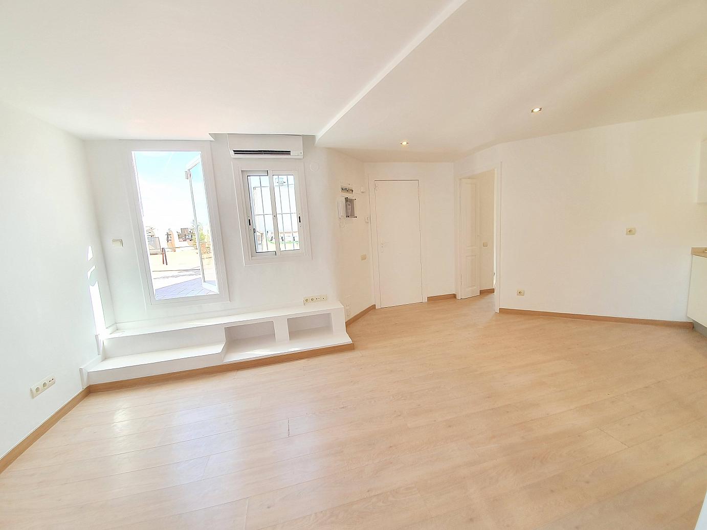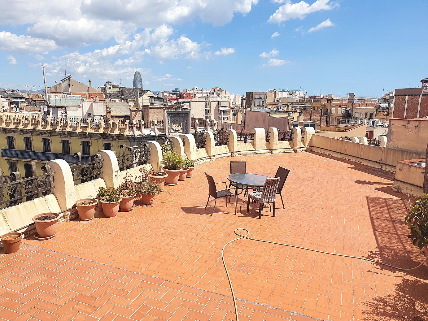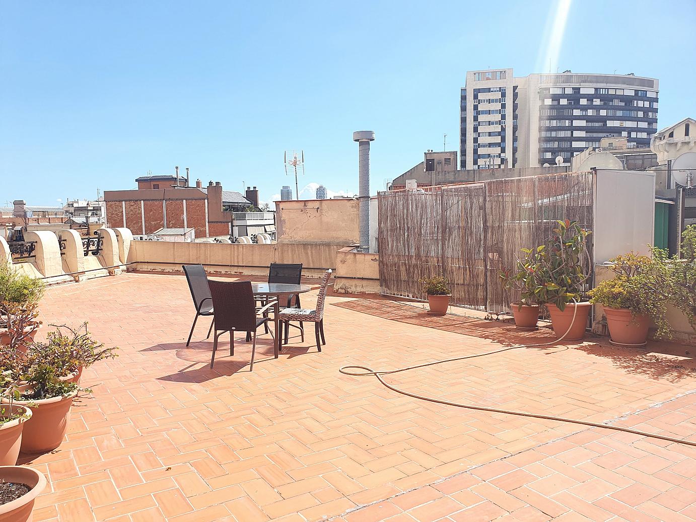 50 m2. Ático en el Eixample, con gran terraza de 120 m2 a dos niveles. La vivienda dispone de amplio salón comedor, con cocina abierta equipada con todos los electrodomésticos, 1 dormitorio doble con armarios empotrados, 1 baño con ducha, y espectacular terraza totalmente diáfana de 120 m2, con acceso directo desde el salón, con magníficas vistas a la Sagrada Familia, al Tibidabo, y Torre Agbar.