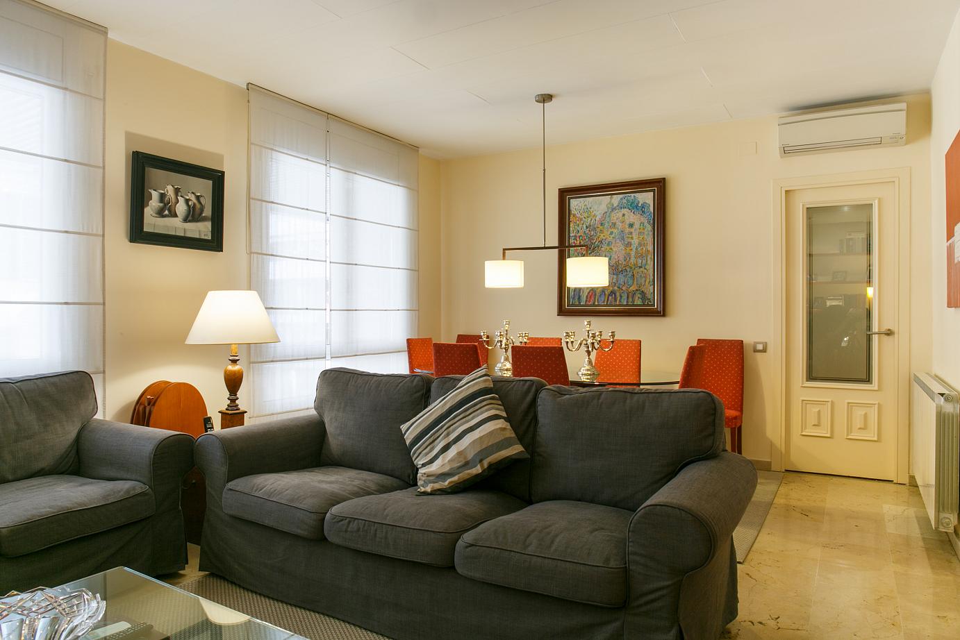116 m2. Bonita vivienda en Sarriá - Sant Gervasi. Salón, comedor y dormitorios exteriores a calle. Calle muy tranquila. Amplio salón comedor, cocina independiente con zona lavadero, 3 amplias habitaciones (antes 4), 1 tipo suite con salida a balcón, cuarto de plancha. Suelos de parket y mármol. Armarios empotrados en todas las habitaciones. Aire acondicionado individual en los dormitorios y salón comedor. El piso se alquila sin muebles. Finca moderna con 2 ascensores. Plaza de parking incluida en el precio con acceso directo. Finca con servicio de conserjería. Muy bien comunicado, junto a todo tipo de servicios. Cerca estación Putxet FGC, autobuses 22, 58,64, 70 H6, V15.