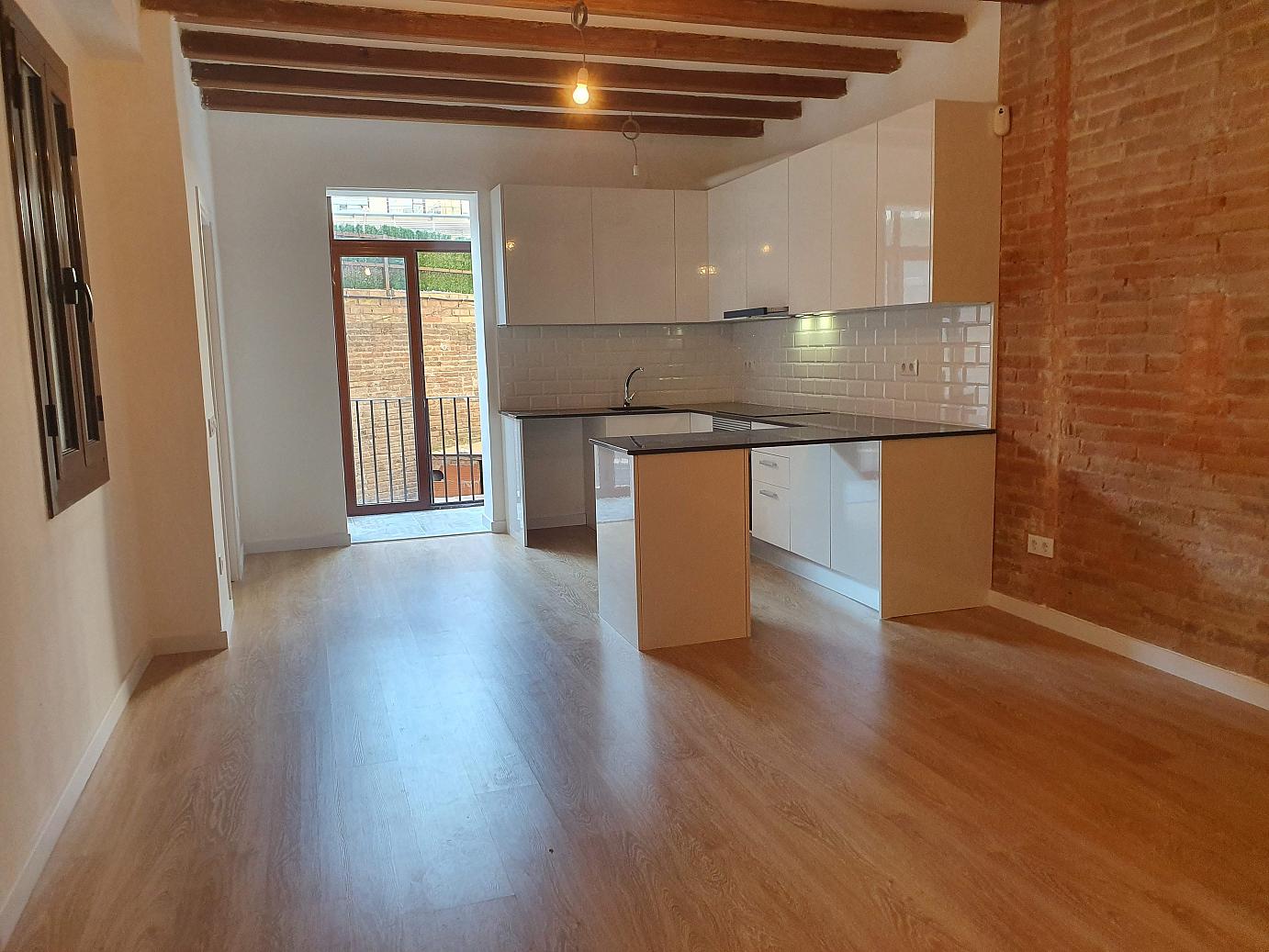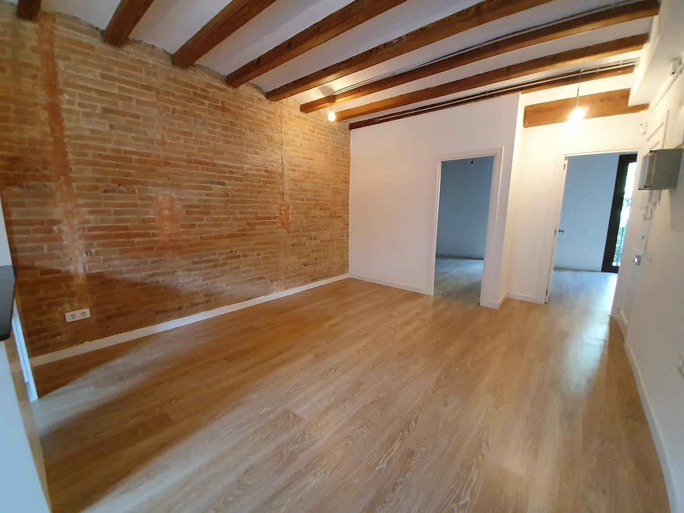 65 m2. Piso en venta nuevo a estrenar, totalmente reformado en el distrito Esquerra del Eixample en finca clásica con ascensor. A 2 minutos del recientemente renovado Mercat de Sant Antoni y a 10 minutos de Plaza Catalunya. La vivienda, totalmente exterior, dispone de 2 habitaciones 1 baño completo con ducha, y amplio salón comedor con cocina americana y zona lavadero independiente. Vigas de madera originales restauradas y pared de ladrillo. Cerramientos de aluminio con doble cristal climalit y suelo de parket. Muy buena comunicación por transporte público. Zona con todos los servicios.