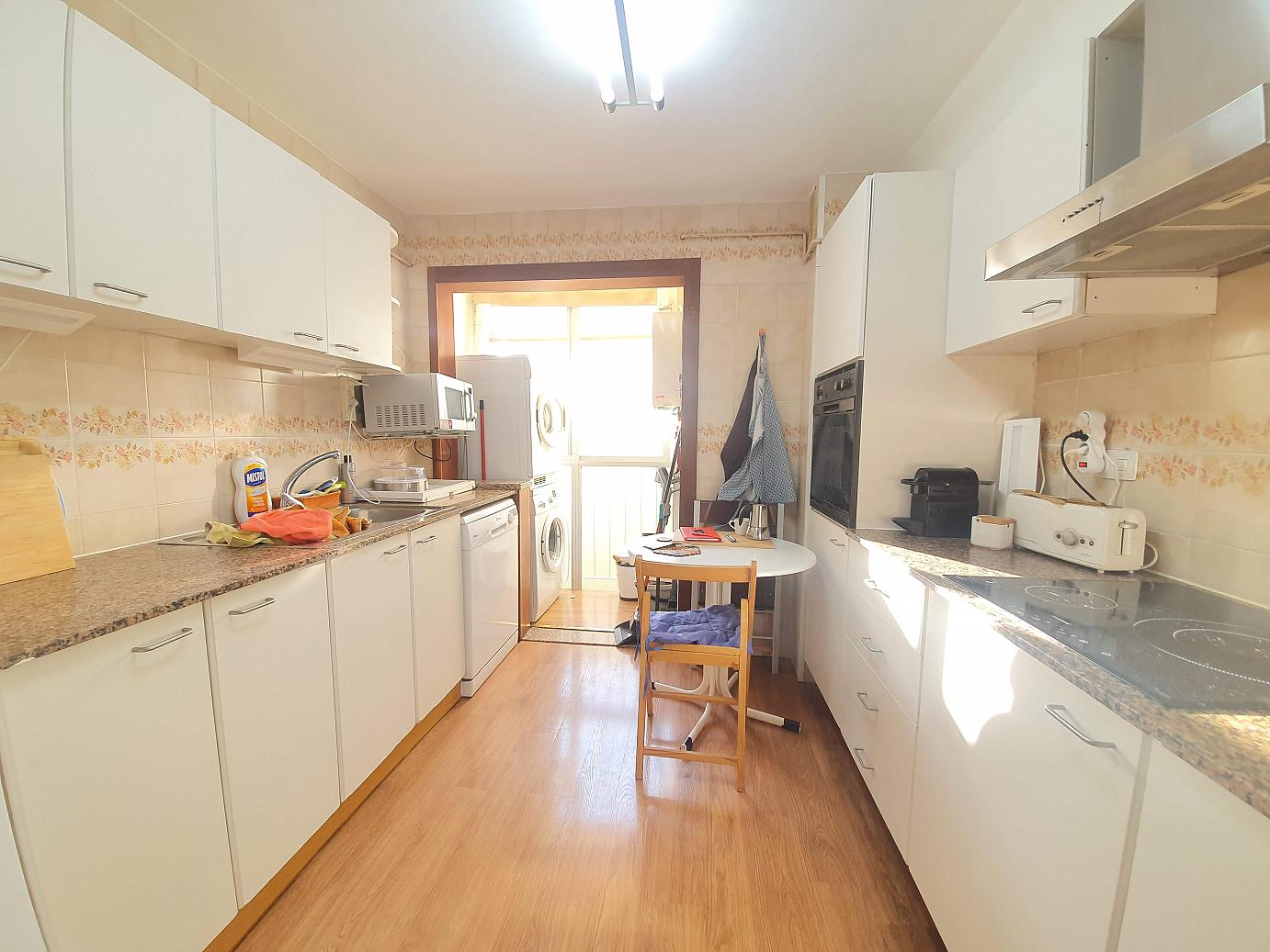 86 m2. Bonito piso en muy buen estado de conservación, situado en el barrio de La Plana, junto a todo tipo de servicios y transporte público. La vivienda, con todas sus estancias exteriores, está ubicada en una finca muy tranquila, de pocos vecinos, tiene una distribución muy buena y dispone de un amplio salón muy luminoso y soleado, con salida a terraza de 8 m2, 4 dormitorios (3 dobles, 1 individual) con armarios empotrados, 2 baños completos con plato de ducha y amplia cocina con zona office, con acceso a lavadero. Aire acondicionado con bomba de frío/calor, suelo de parqué, altillo, carpintería exterior de aluminio / climalit. Gran terraza comunitaria en la azotea del edificio exclusiva para el uso y disfrute de los vecinos. Rápido acceso a rondas, autopistas y salida de la ciudad.